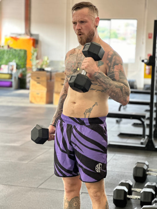 BOXFIT MENS PERFORMANCE SHORTS - PURPLE ZEBRA PRINT